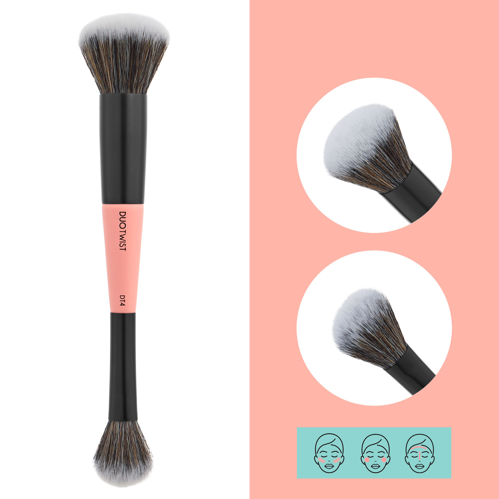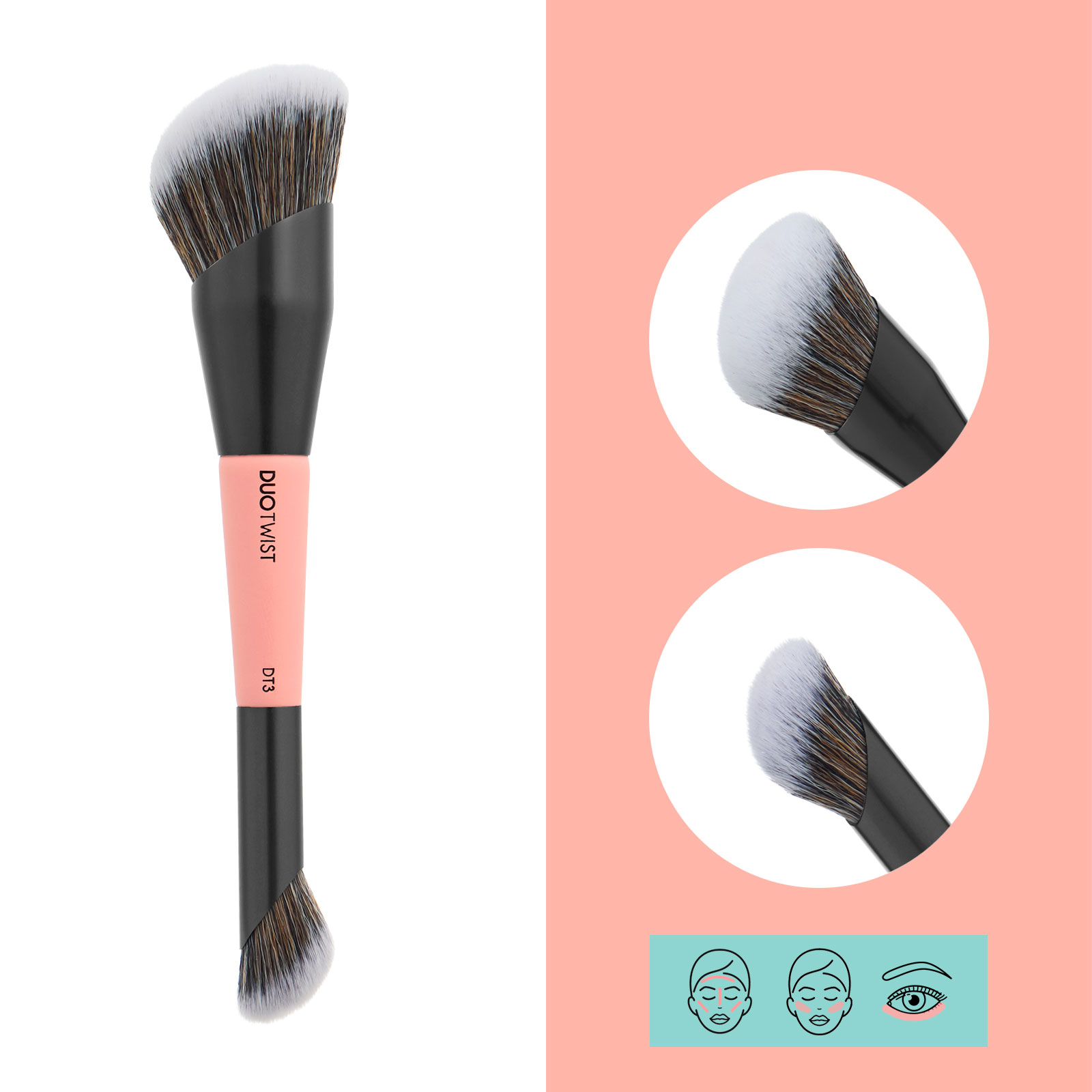 La brocha Duo Twist DT1 ha sido diseñada para una aplicación rápida, uniforme y sin marcas de bases de maquillaje, correctores y otros productos fluidos o en crema.