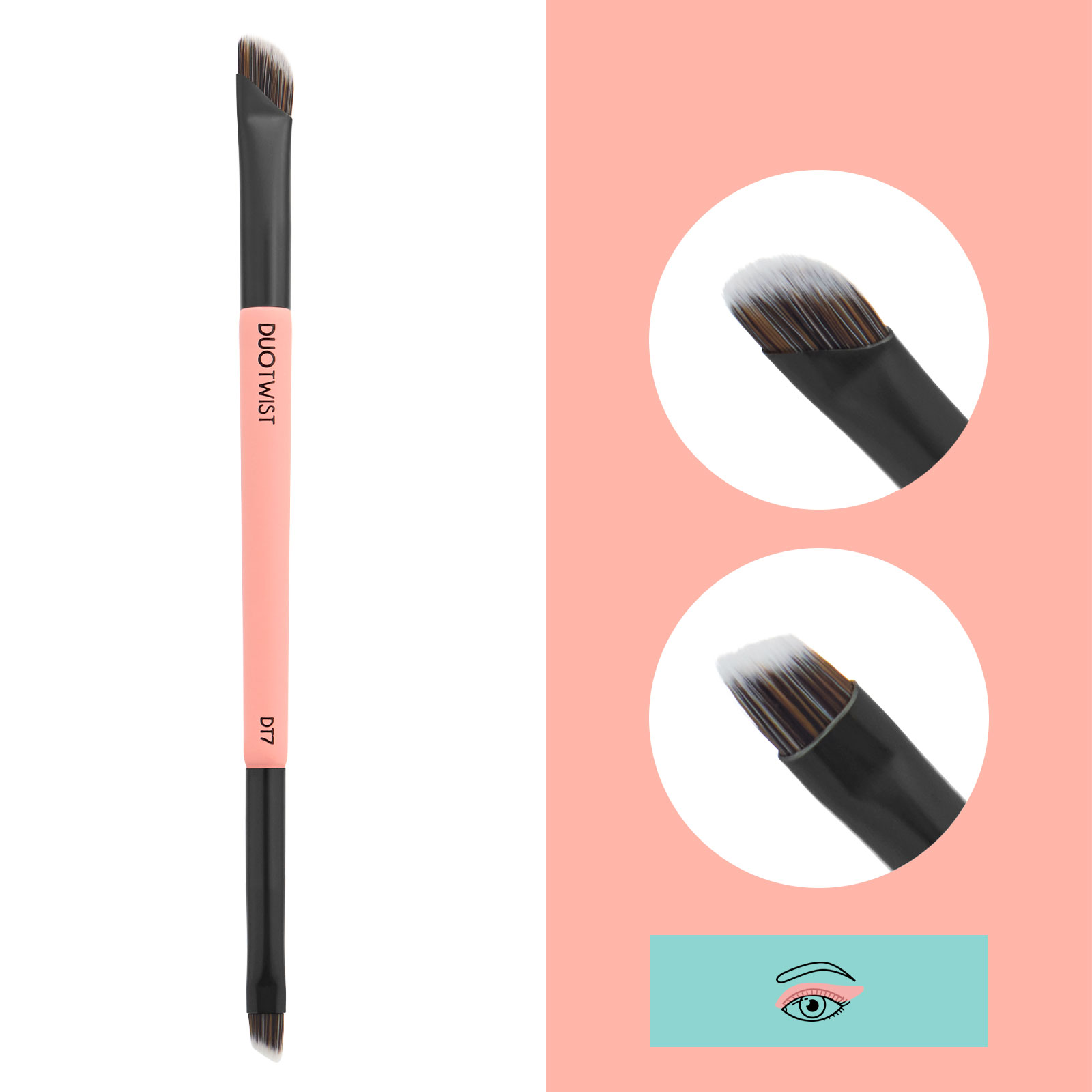 Pincel doble con dos extremos biselados que permiten aplicar, definir o rasgar el delineado de ojos con precisión, tanto con productos en gel como en polvo.