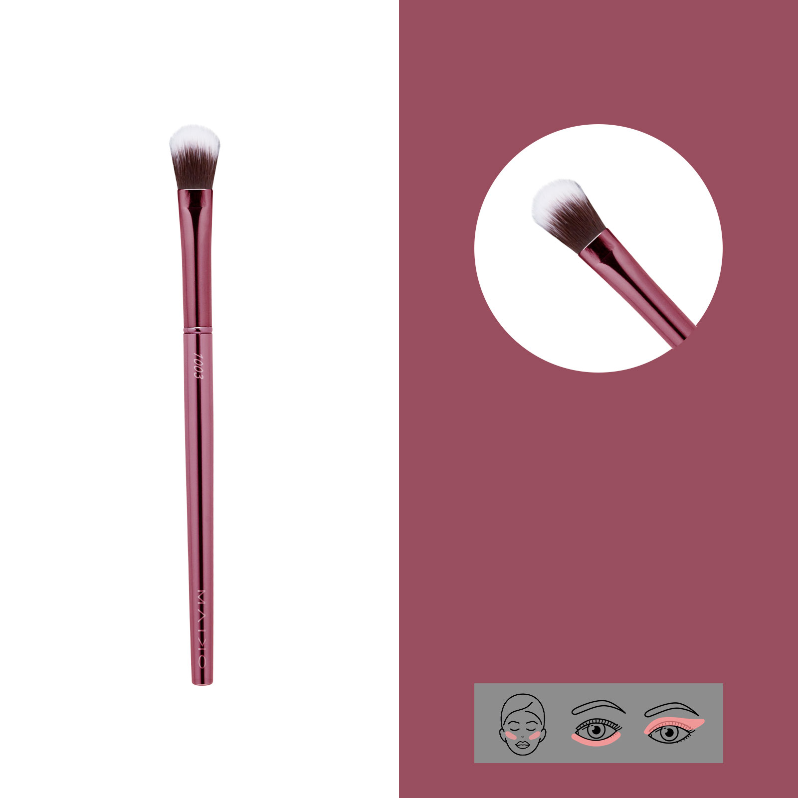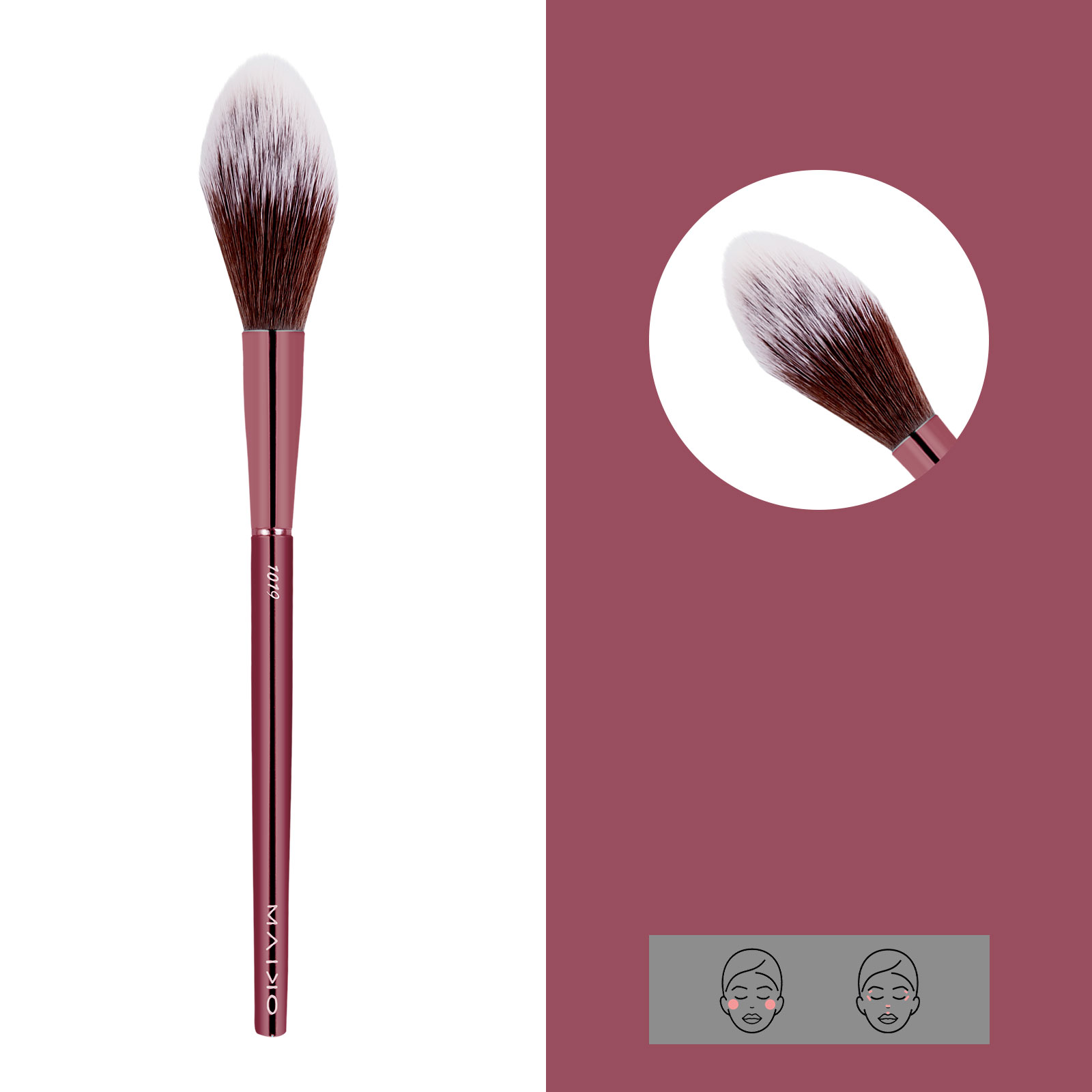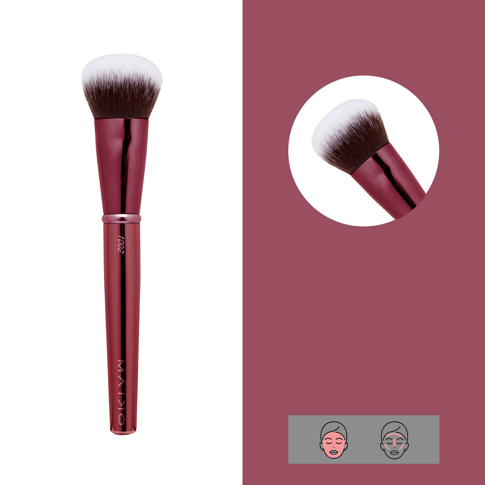 Aplicación de la base de maquillaje en distintas texturas como fluida o cremosa. Brocha de pelo sintético.