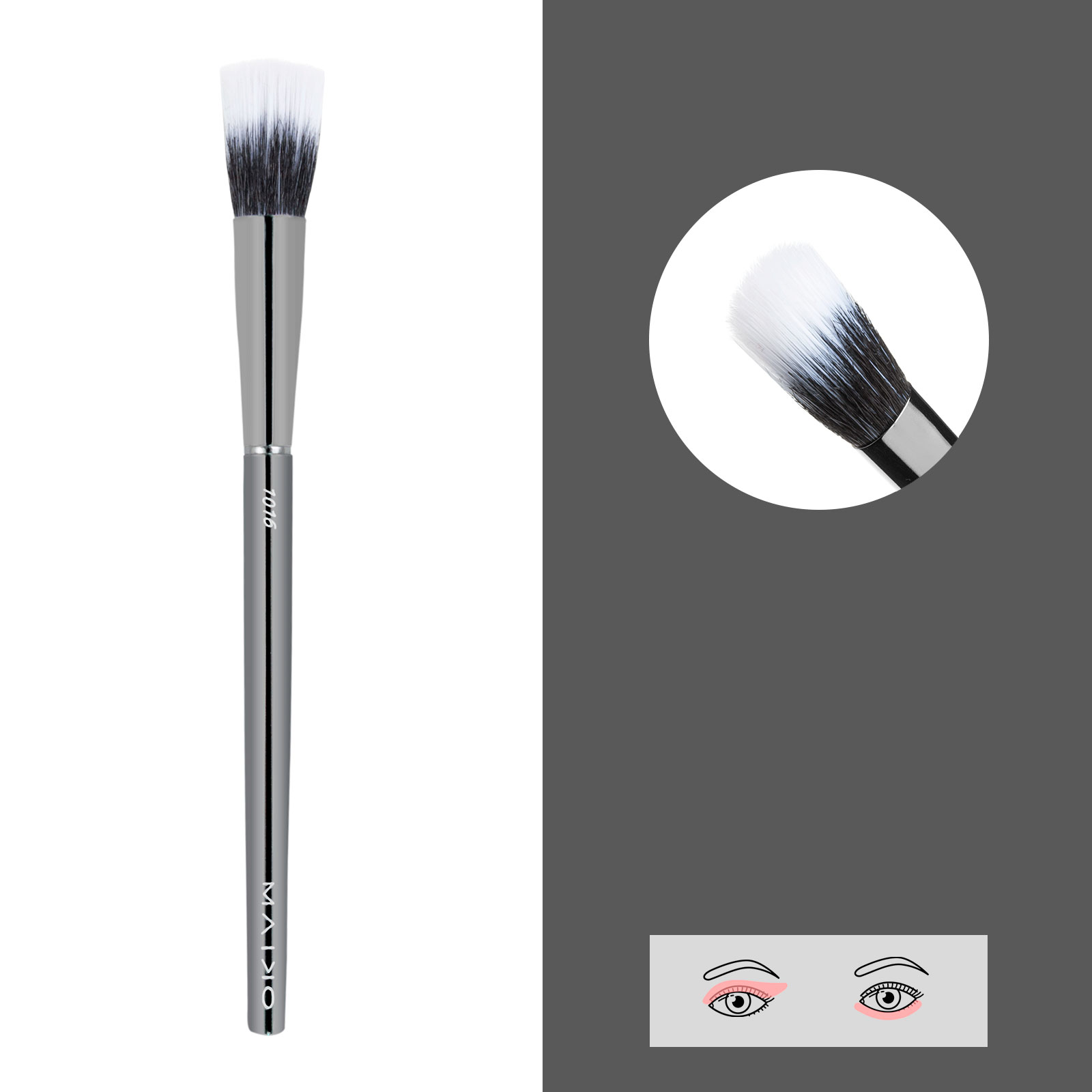 Aplicación precisa de sombra de ojos en puntos determinados. También permite difuminar lápices de ojos. Pelo con mezcla de sintético y natural de cabra.